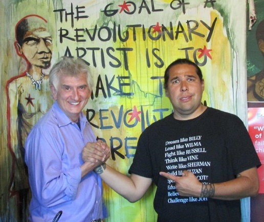 Dallas Goldtooth is and activist and the Keep It In The Ground campaign organizer for the Indigenous Environmental Network.a But he is also an entertainer and co-founder of the 1491s comedy group. He comes to the Que4 Radio studio, fresh from the protest against the Dakota Access Pipeline being staged at the Sacred Stone Camp by the Standing Rock Sioux and other tribes. In a wide-ranging conversation, he talks to Mike Nowak and Peggy Malecki about Indian tribe names, social justice, humor as political strategy, being hip and more.